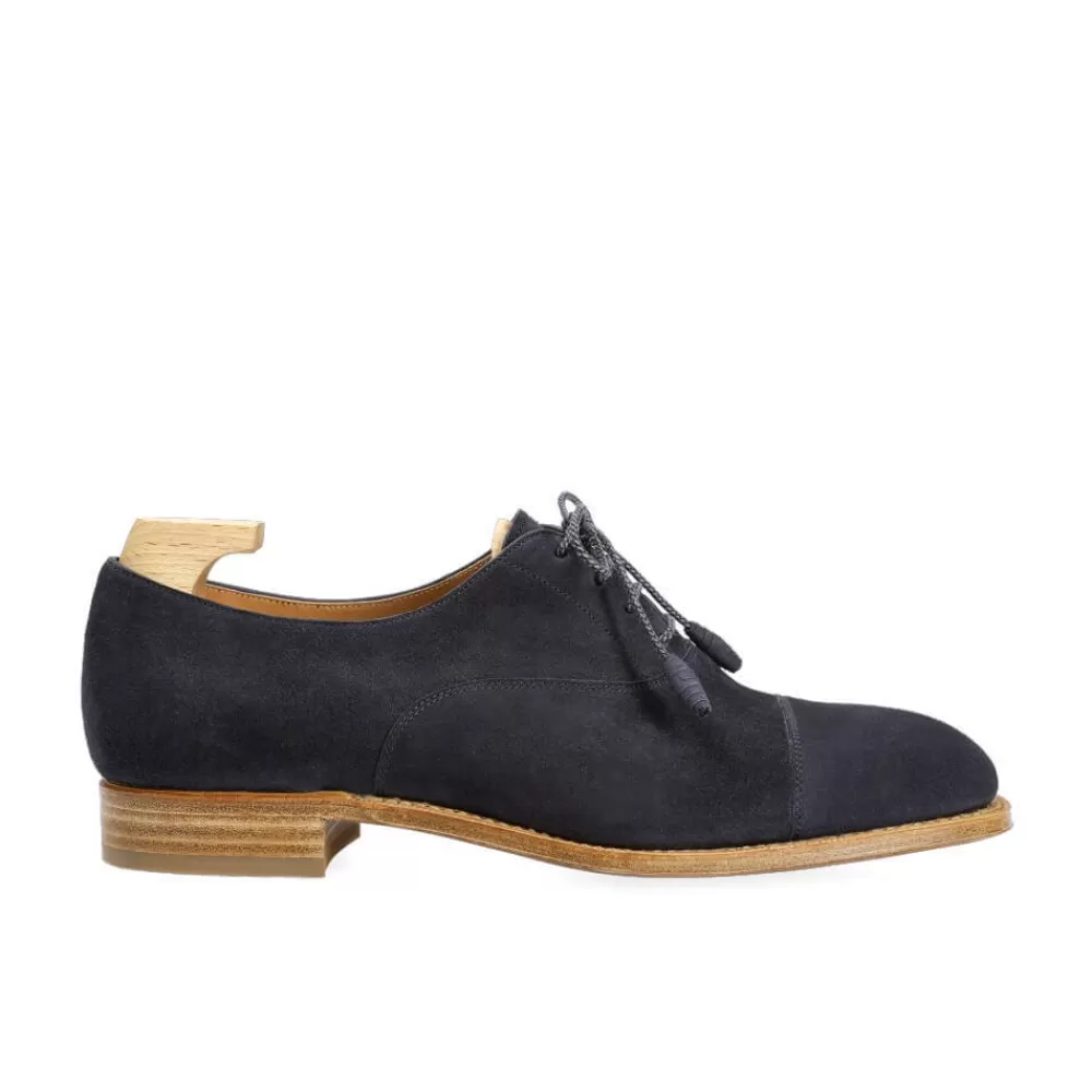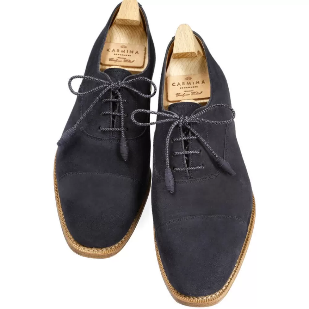 Clásico zapato ingles de cordones ahora para mujer.Modelo fabricado artesanalmente en Ante vogue marino y acabado con suela de cuero.Este zapato, como todos los Carmina, está manufacturado cuidadosamente por artesanos expertos, los cuales siguen las mismas técnicas que Charles Goodyear concibió en 1869.Modelo montado en Hills. Horma de calce más bien estrecho con empeine bajo para una mayor sujeción del pie. Se caracteriza también por una punta semi cuadrada, lo que la hace ideal para modelos tanto elegantes como semi-sport.