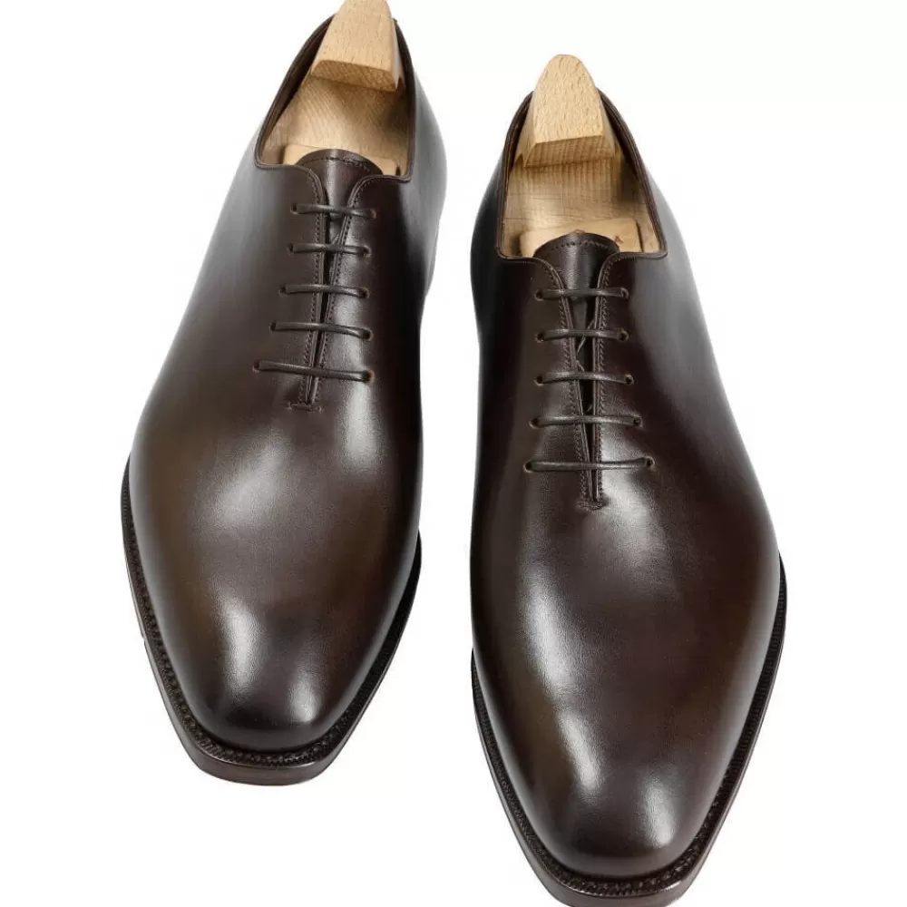Zapatos oxford enterizos en becerro marrón.Acabadas con suela de cuero y forro de becerro.Este zapato al igual que todos los Carmina está manufacturado cuidadosamente por artesanos expertos y siguiendo las mismas técnicas que Charles Goodyear concibió en el año 1869.Para este modelo hemos elegido la horma Rain, por su versatilidad en estilo, ya que funciona perfectamente como zapato elegante y a la vez semi-sport. La Rain es un horma bien proporcionada con buen calce tanto en empeine como en punta.