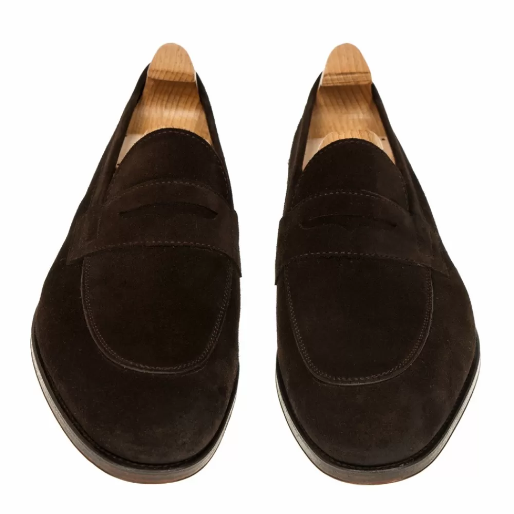 Mocasines de banda sin forro en ante marrón.Montado sobre una suela de cuero usando nuestro último cosido Flex Goodyear, con una construcción excepcionalmente flexible y ligera.Este zapato al igual que todos los Carmina está manufacturado cuidadosamente por artesanos expertos y siguiendo las mismas técnicas que Charles Goodyear concibió en el año 1869.Para este estilo hemos elegido la horma Sineu. Esta horma de forma almendrada es la última incorporación a nuestra colección. La horma Sineu tiene un calce muy similar a nuestra horma Rain con un empeine sorprendentemente generoso y adaptable. Su estilo se encuentra entre forma alargada de la Rain y la forma redondeada de la Forest conservando el excelente calce y versatilidad.